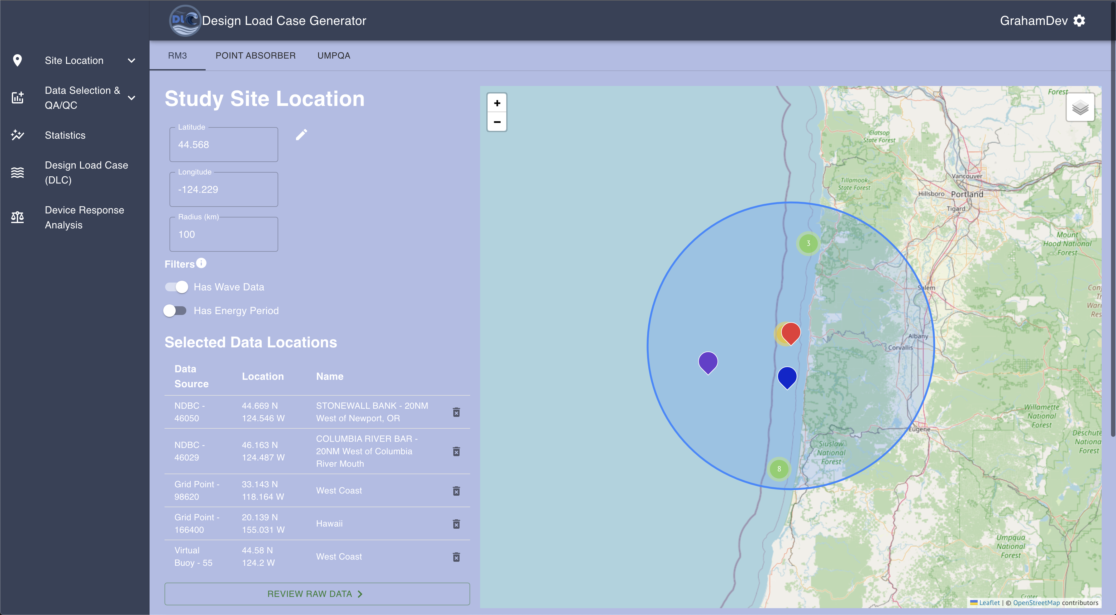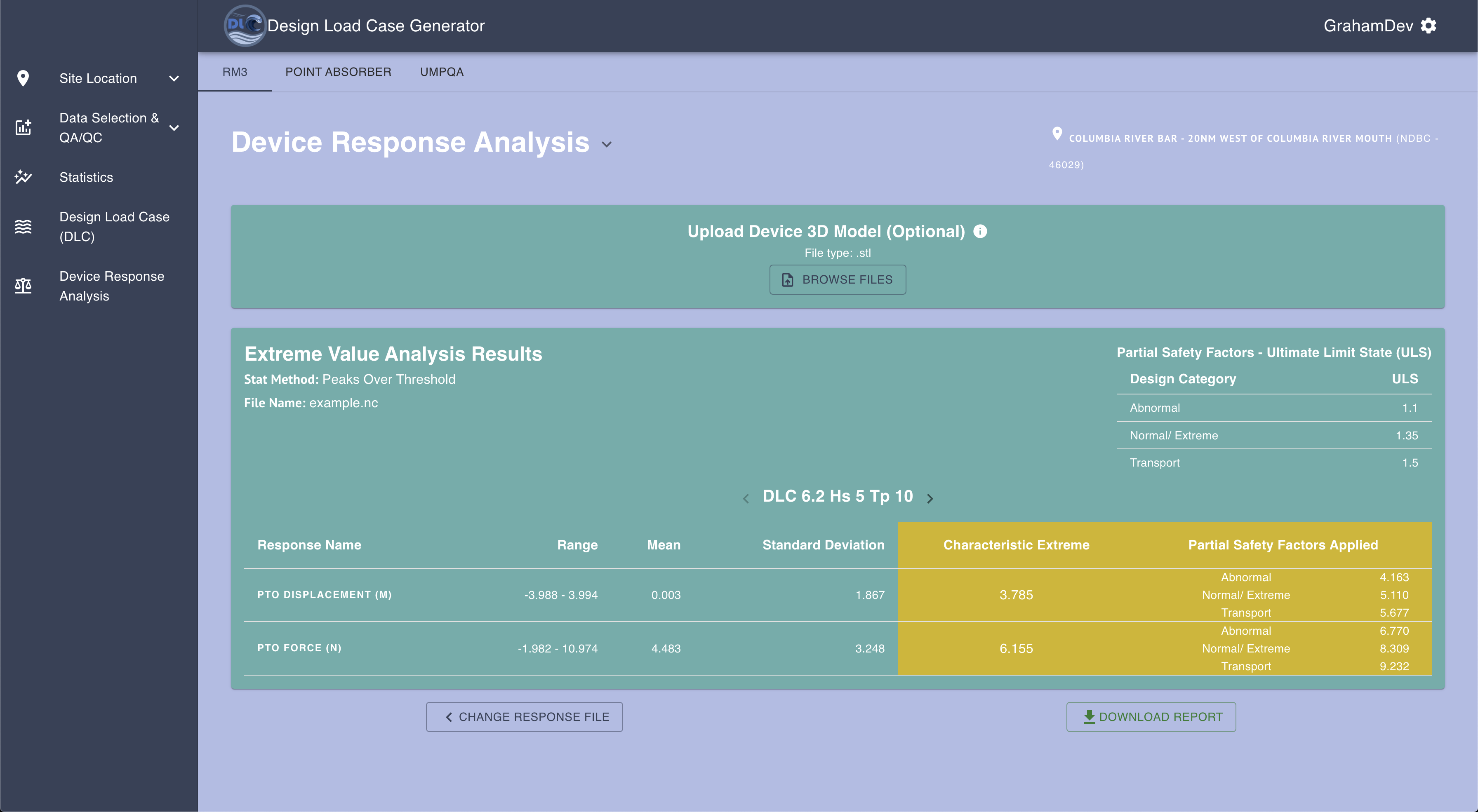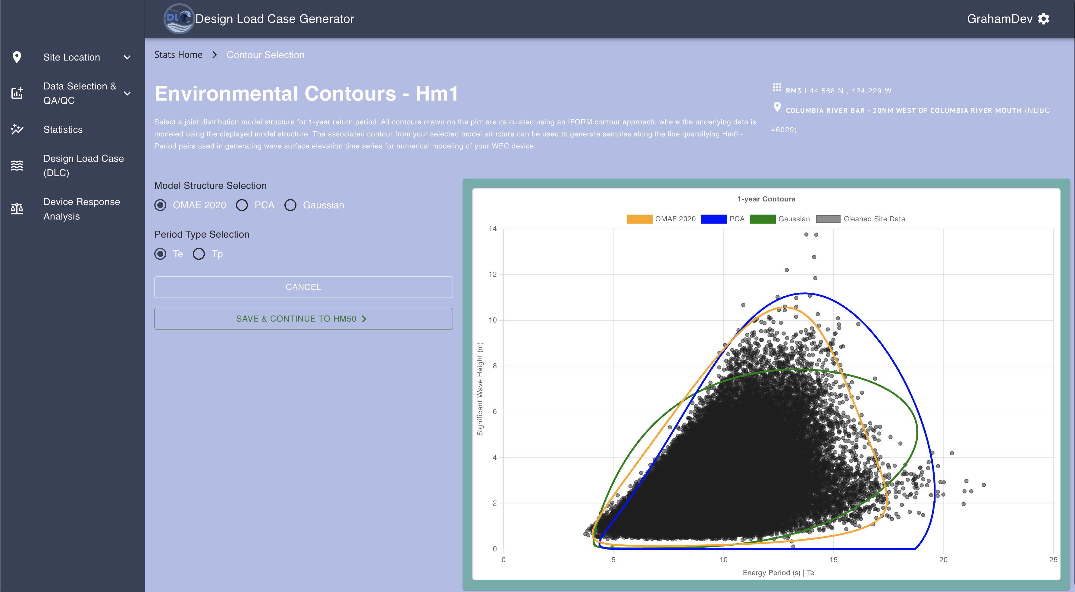 The Design Load Case (DLC) Generator is geared towards marine energy design conditions. In essence, the tool is intended to help marine energy developer obtain design load conditions, including 1- and 50-year sea states. These return periods are requirements according to IEC TS 62600-2.